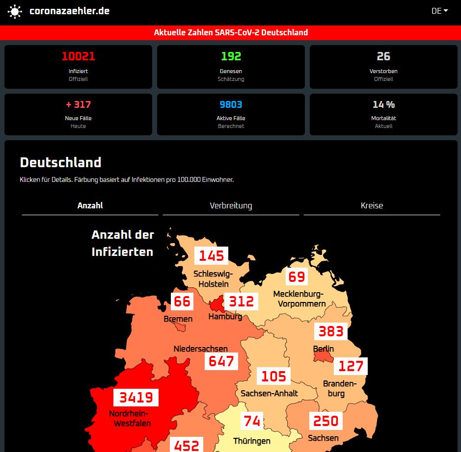 Coronazähler.de is the most up to date counter of Corona Cases for Germany. It uses unique Web-Crawling technology and intelligent information recognition and AI to keep the information up to date and to prognose future development.