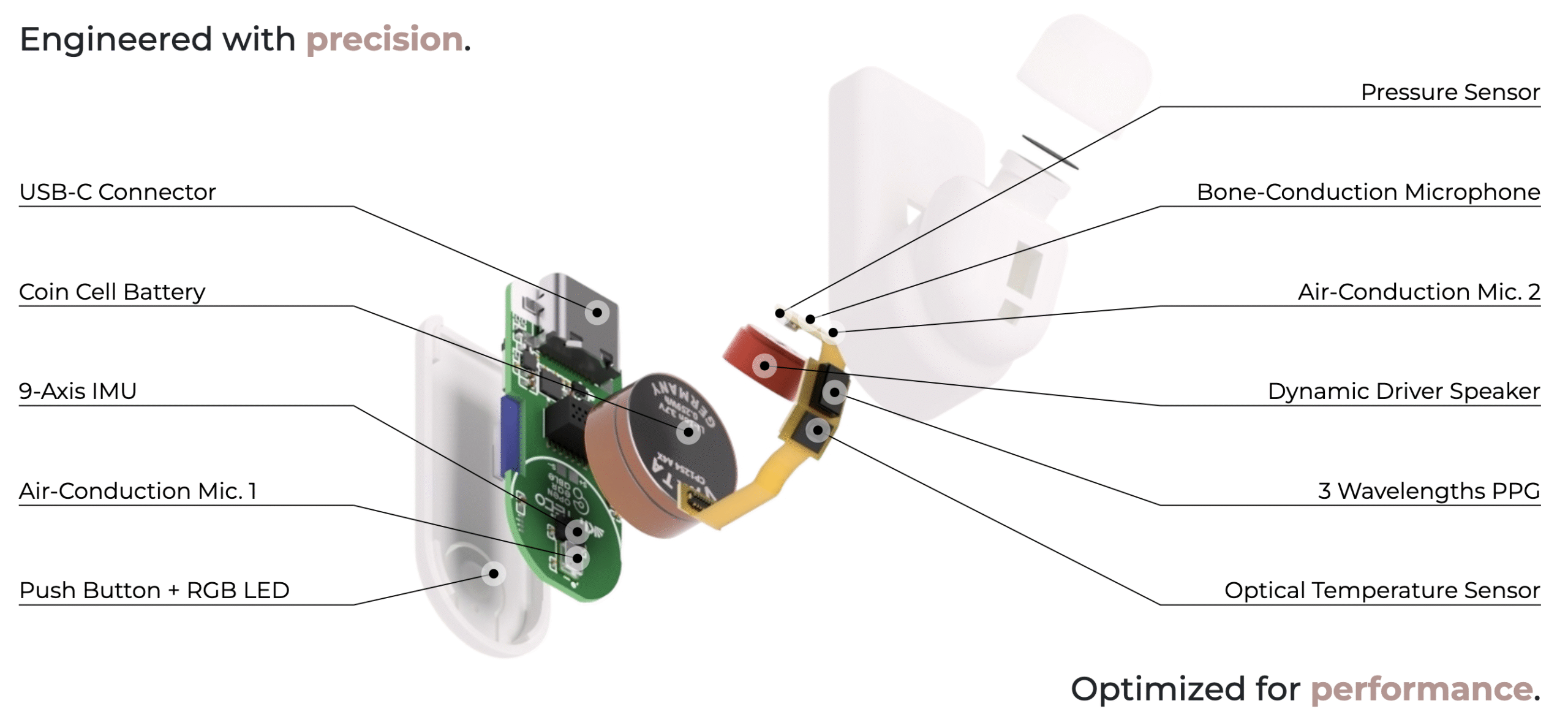 - Rich Sensing: Features the most sensors ever integrated into an earphone, all within a tiny form factor suitable for both development and research.